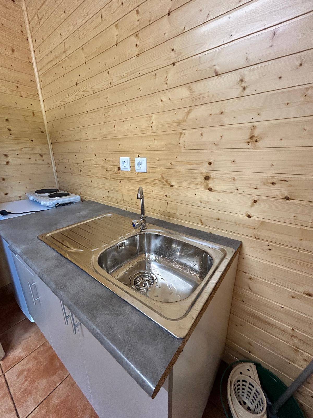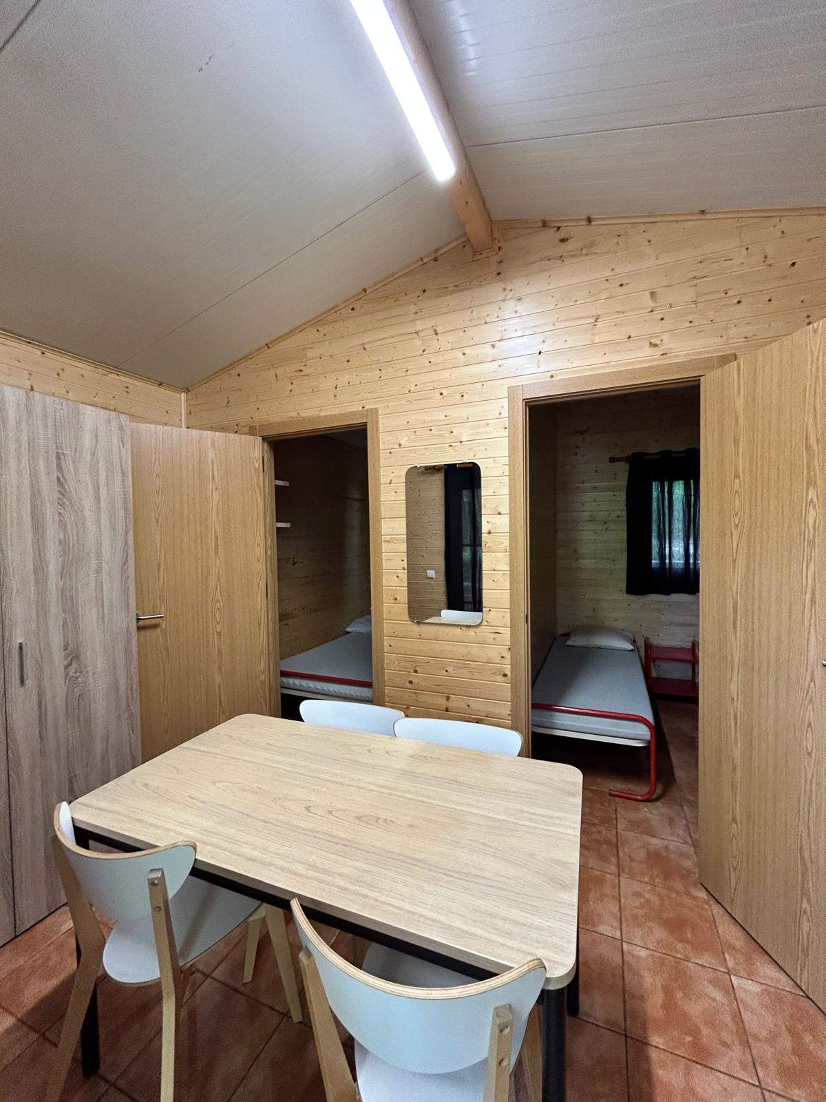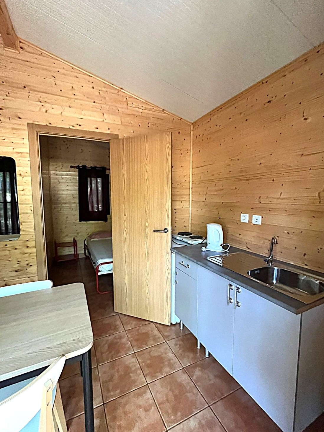 The new bungalows accommodate 4 to 5 people and are designed for overnight stays. Preparing a small meal is possible in the kitchen with dining area.